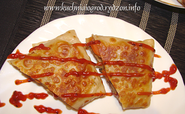Nadmiar wody odlać. Ser zetrzeć na tarce, dodać do warzyw i wymieszać. Faszerować naleśniki, a następnie podsmażyć ja na rumiano na patelni.