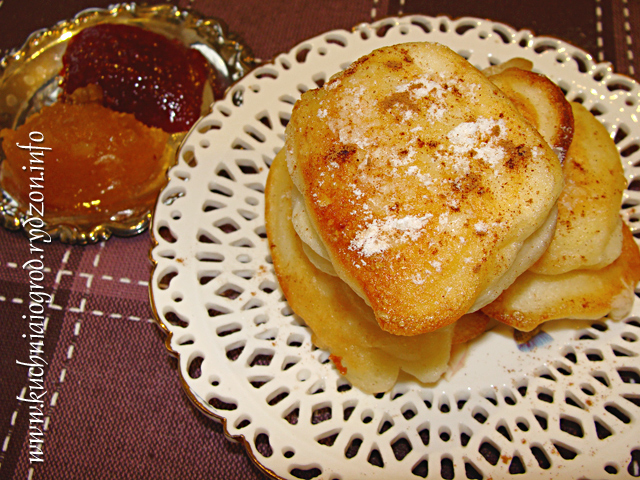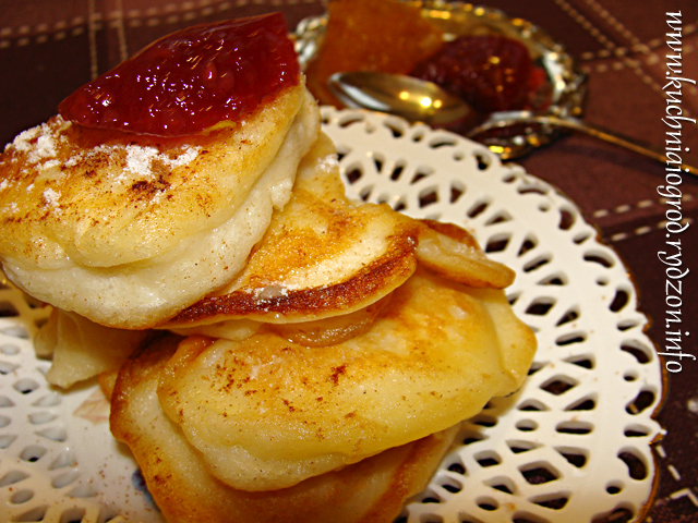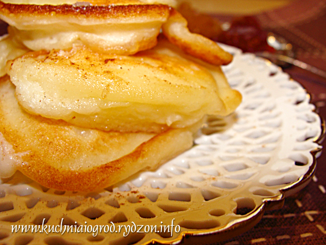 Podawać posypane cukrem pudrem, cynamonem i np. z konfiturą malinową.