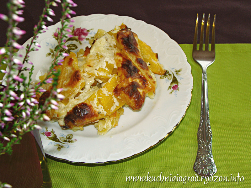 Połączenie makaronu i dyni, składników o delikatnym smaku, mogło sprawiać wrażenie, że danie będzie mdłe. Ale jakie cuda czyni gałka muszkatołowa w połączeniu sosem serowo-śmietanowym! O tym trzeba przekonać się osobiście.